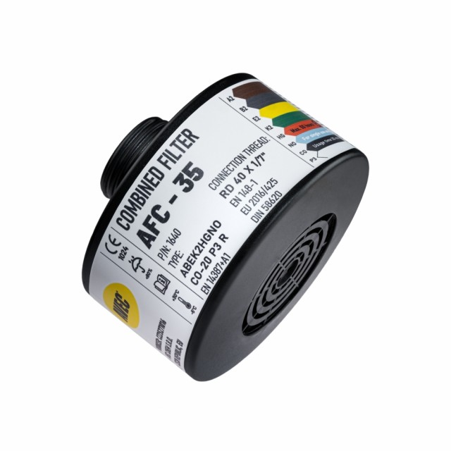AVEC sitt spesialutviklede kombinasjonsfilter A2B2E2K2HgNOCOSXP3 D R er laget for maksimal sikkerhet i krevende arbeidsmiljøer. Filteret beskytter effektivt mot både organiske og uorganiske gasser, syrer, ammoniakk, karbonmonoksid, kvikksølvdamp og faste partikler – inkludert radioaktive stoffer, mikroorganismer og asbestfibre.